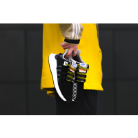 The EQT Support 93 / Berlin comes with a black mesh surface and white BOOST ™ midsole. The iconic three stripes in black also serve as eyelets of the BVG yellow shoelaces. A white leather panel on the outside provides contrast.
